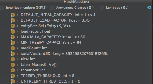 先来看一下,HashMap中都定义了哪些成员变量。