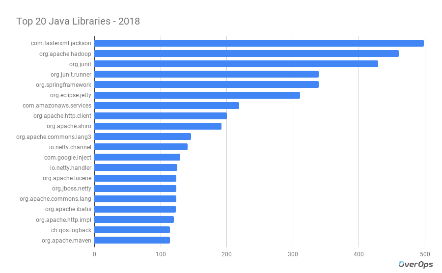 在我们排名前20的库中,我们可以找到Eclipse基金会的Jetty、Apache基金会的 Shiro 、Netty以及谷歌的Guice库等。